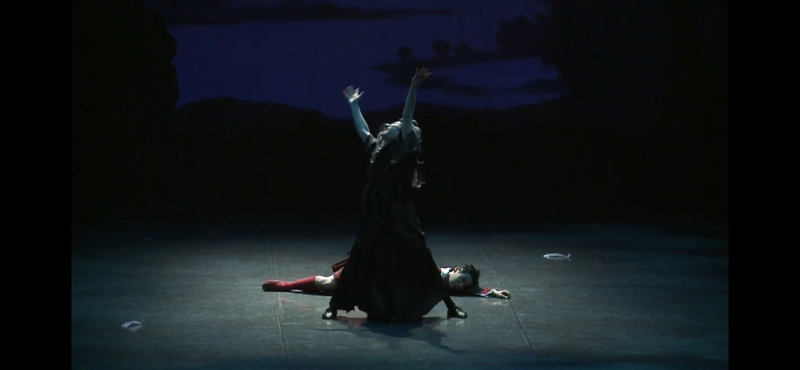 森の中で、ジェームズはシルフィードと楽しく語り、シルフィードの姉妹たちと踊ります。シルフィードとずっと一緒にいたいジェームズは、マッジにもらったスカーフで彼女を包みますが、羽が抜け落ち、彼女は息絶えてしまいます。マッジが復讐のために魔法をかけたスカーフだったのです。ジェームズは絶望のあまり、その場に崩れ落ちます。
