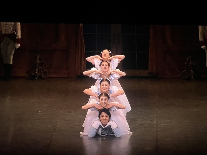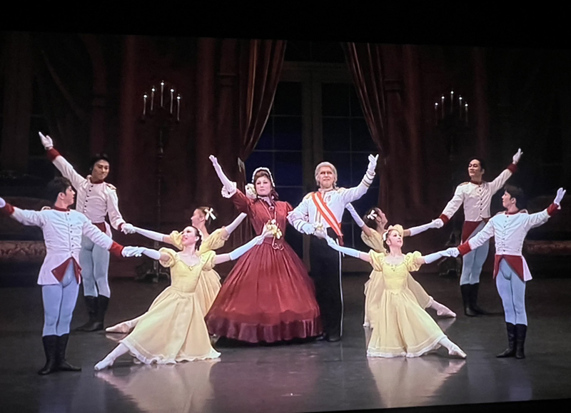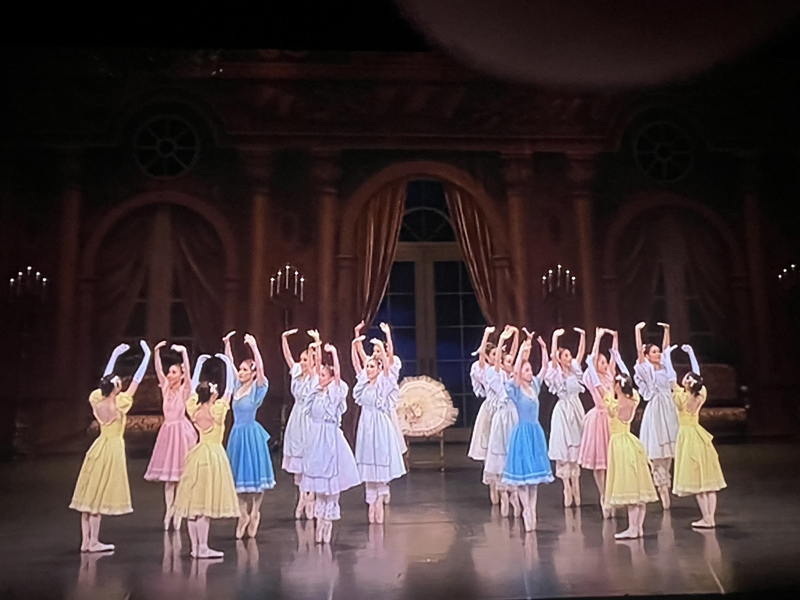 そのうちに老将軍にひきいられた若い候補生たちが到着します。双方ともおずおずとしていましたが、緊張がほぐれるとたちまち楽しい舞踏会の雰囲気が盛り上がって行きます。いくつかのディベルティスマンがつぎつぎに踊られ、その中で若いカップルが誕生し、女子学校校長も老将軍とひとときのアバンチュールを楽しみます。