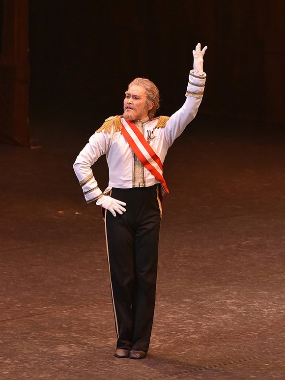 苦労した点では、自由にやっているイメージの、私が演じた老将軍、そして今回佐々木大さんが怪我の為に代役で来て頂いた、山本隆之さん演じる女学院長、この二役は、想像していたよりも遥かに多くの音キッカケや、動きマイム身体の方向、使い方等の演出指定が多かった事です。