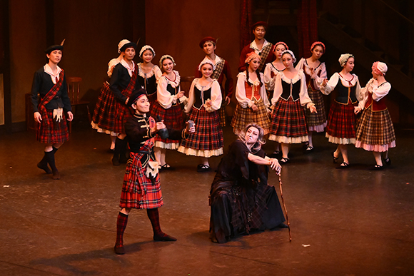 この作品の特徴でもある、地域の伝統や風土を表した踊りですが、最大の難所とも言える第1幕のリールの踊りは本当に苦労しました。列の並びや音楽に合わせることはもちろん、身体や脚の角度、顔の向きなど決めごとが多かったのですが、数少ないリハーサルの中でダンサーは一つ一つの課題をクリアにしていき、本番では見事な踊りを披露してくださいました。第2幕の妖精の皆さんも、リハーサルの前後には必ず集まって綿密な打ち合わせをし、舞台にはなくてはならないコール・ド・バレエとしての責任を全うして下さいました。そして、素晴らしい演技を見せていただいたソリストの皆様。技術はもちろん一人一人が「俳優」となり、バレエという物語の中で生きるというその姿はまさに、舞台芸術としてあるべき姿ではないでしょうか。私も微力ながらマッジ役として参加させていただきましたが、皆様との掛け合いは楽しく、役者としての幸せを感じておりました。皆様の力を一つにして作品を創り上げるという意味では、たいへん意義のある舞台であったと思います。